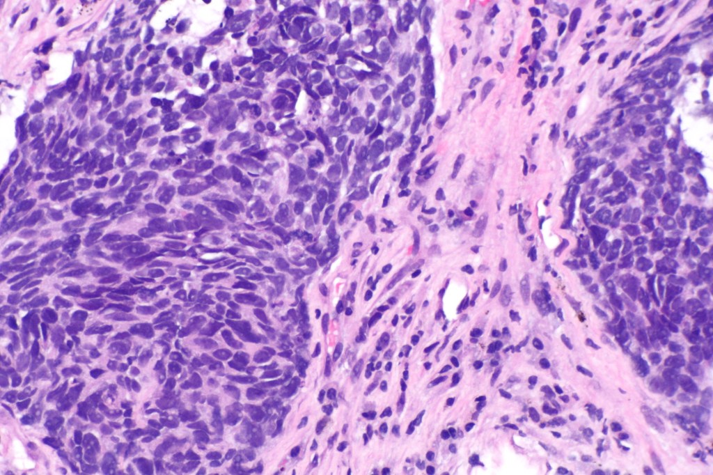 [2] Image retrieved from: https://upload.wikimedia.org/wikipedia/commons/9/94/Non-small_cell_lung_carcinoma_–_high_mag.jpg