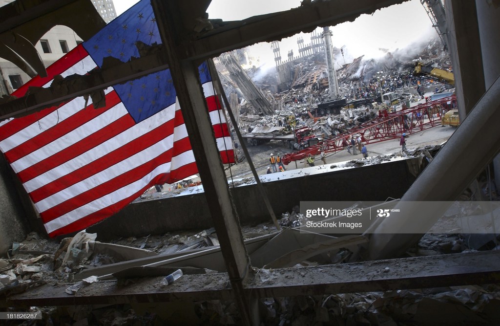 - Image retrieved from: https://www.gettyimages.com/detail/photo/the-american-flag-is-prominent-amongst-the-rubble-royalty-free-image/181826287?adppopup=true
