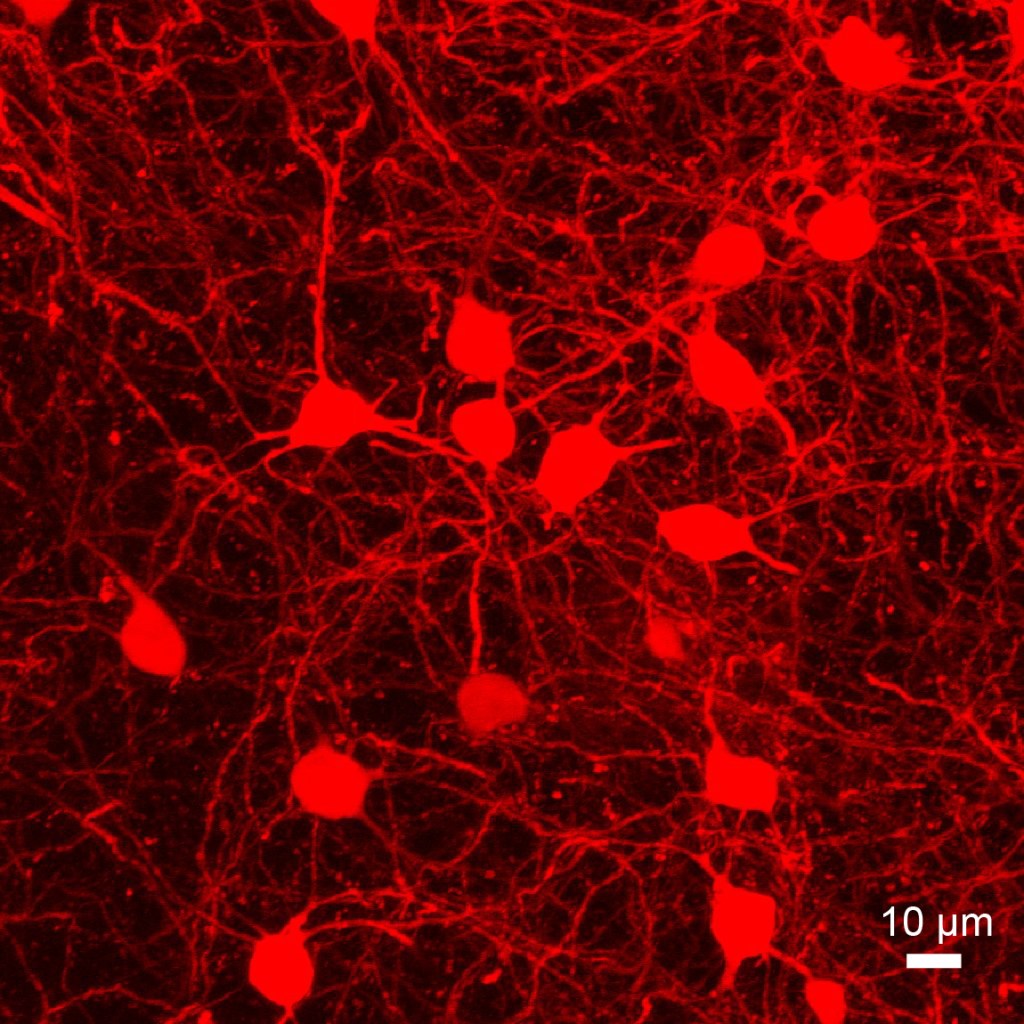 [2] Image retrieved from: https://commons.wikimedia.org/wiki/File:Z_MaxProjection_of_MediumSpinyNeurons_Gpr101Cre_dtTomato.jpg