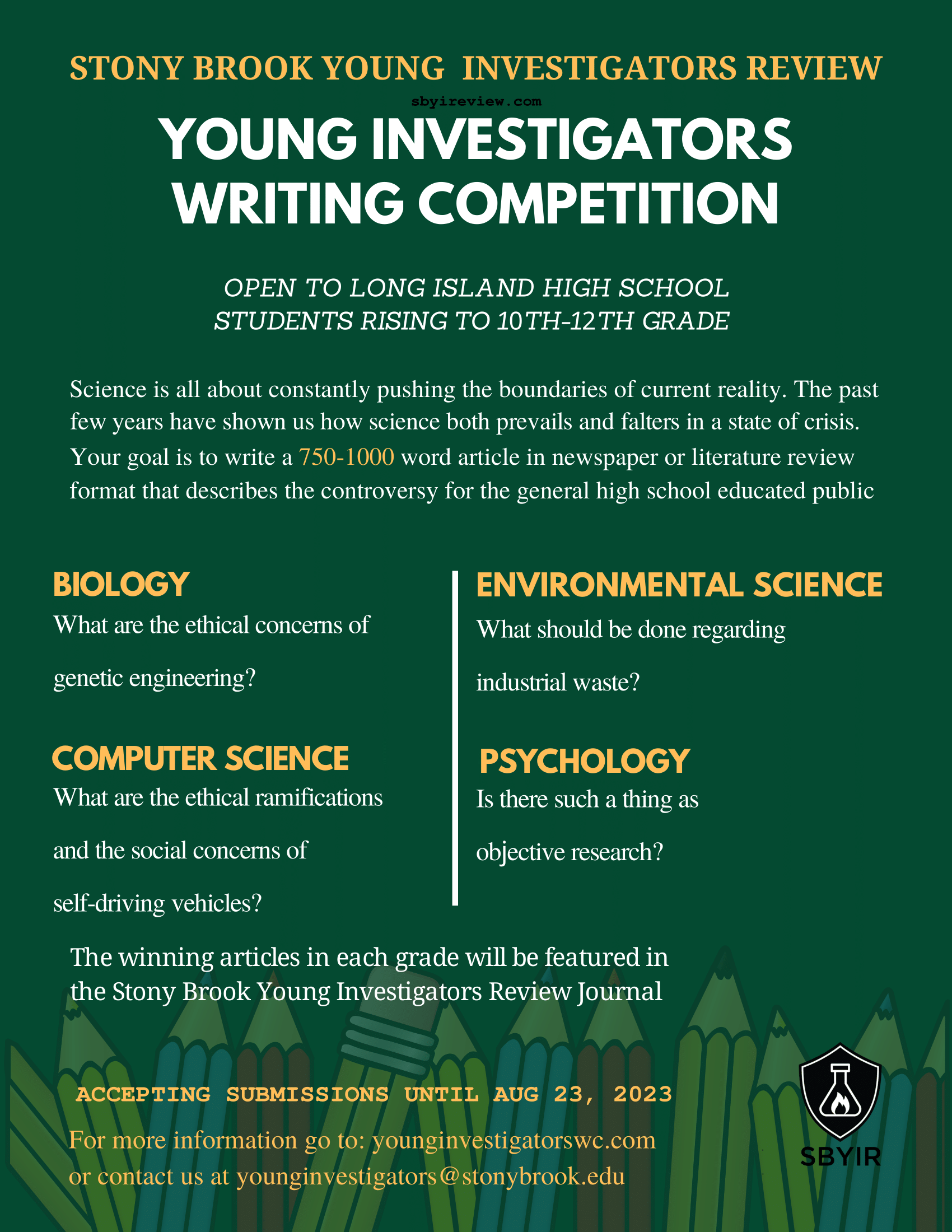 For the fourth year in a row, the Young Investigators Writing Competition is open for applications!