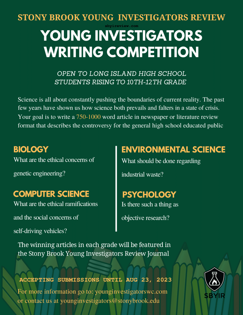 As always, the winner of each category will have their piece published in our Young Investigators Review Fall Journal. Our Fall 2022 and Spring 2023 journals can be read here (the entries of the winners of YIWC 2022 start on page 34 of the Fall 2022 edition).