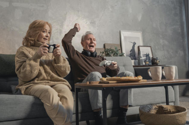 - Image Retrieved From: https://www.pexels.com/photo/elderly-couple-sitting-on-couch-playing-video-games-5699397/