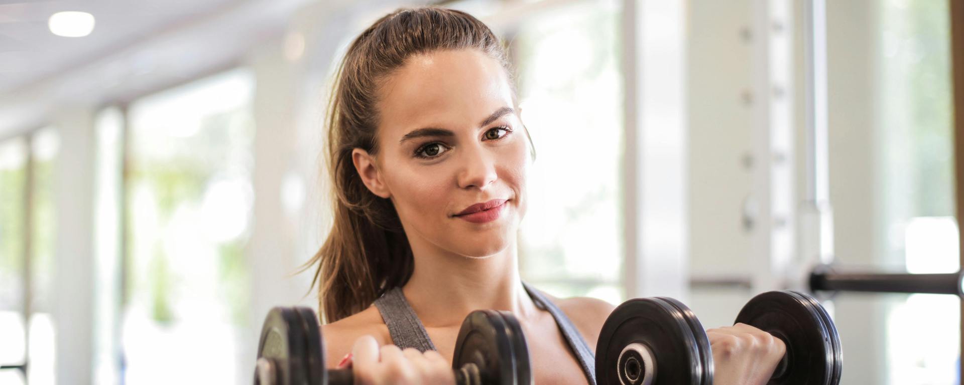 Figure 1. Woman lifting two dumbbells at the gym