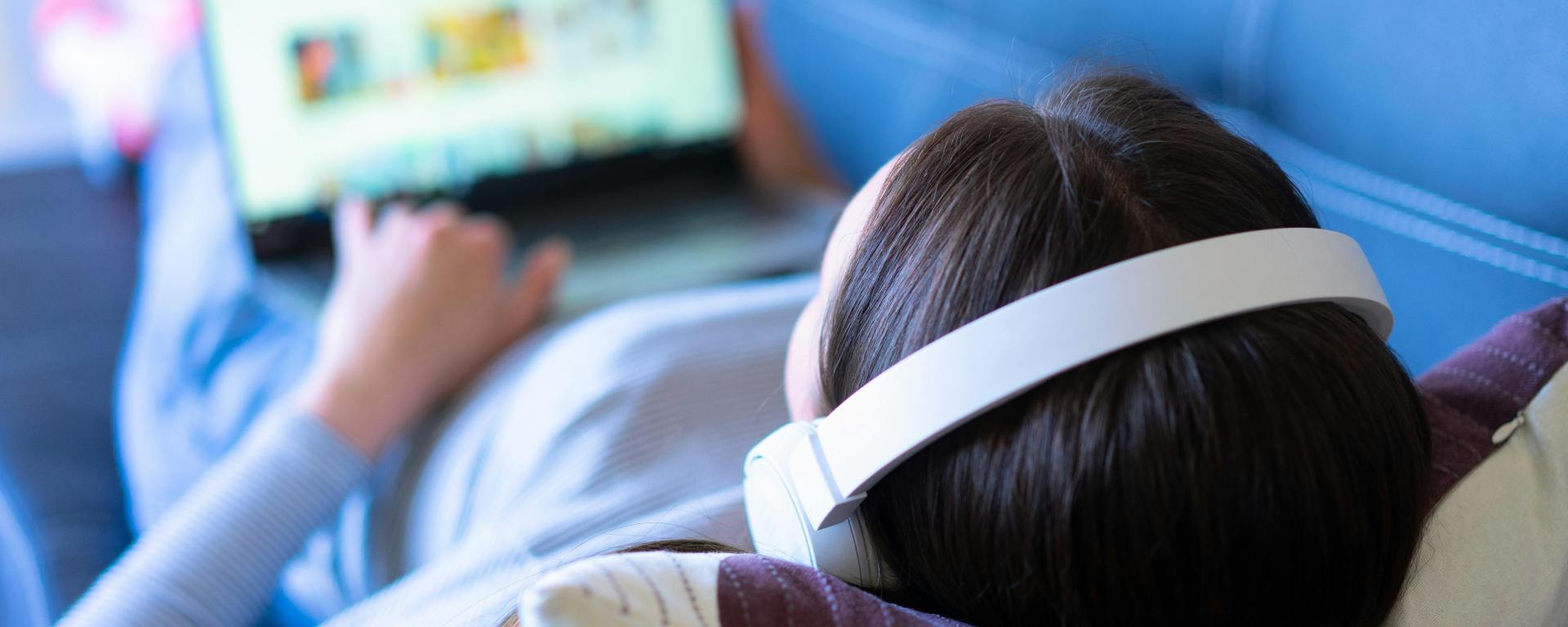Figure 1. Woman wearing headphones while scrolling through YouTube